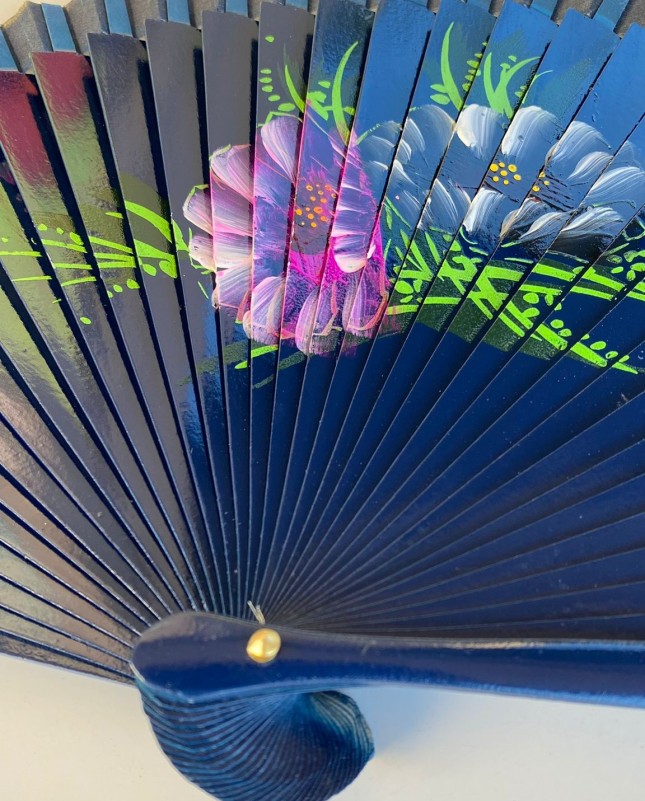 İki Çiçek Desenli Lacivert Yelpaze