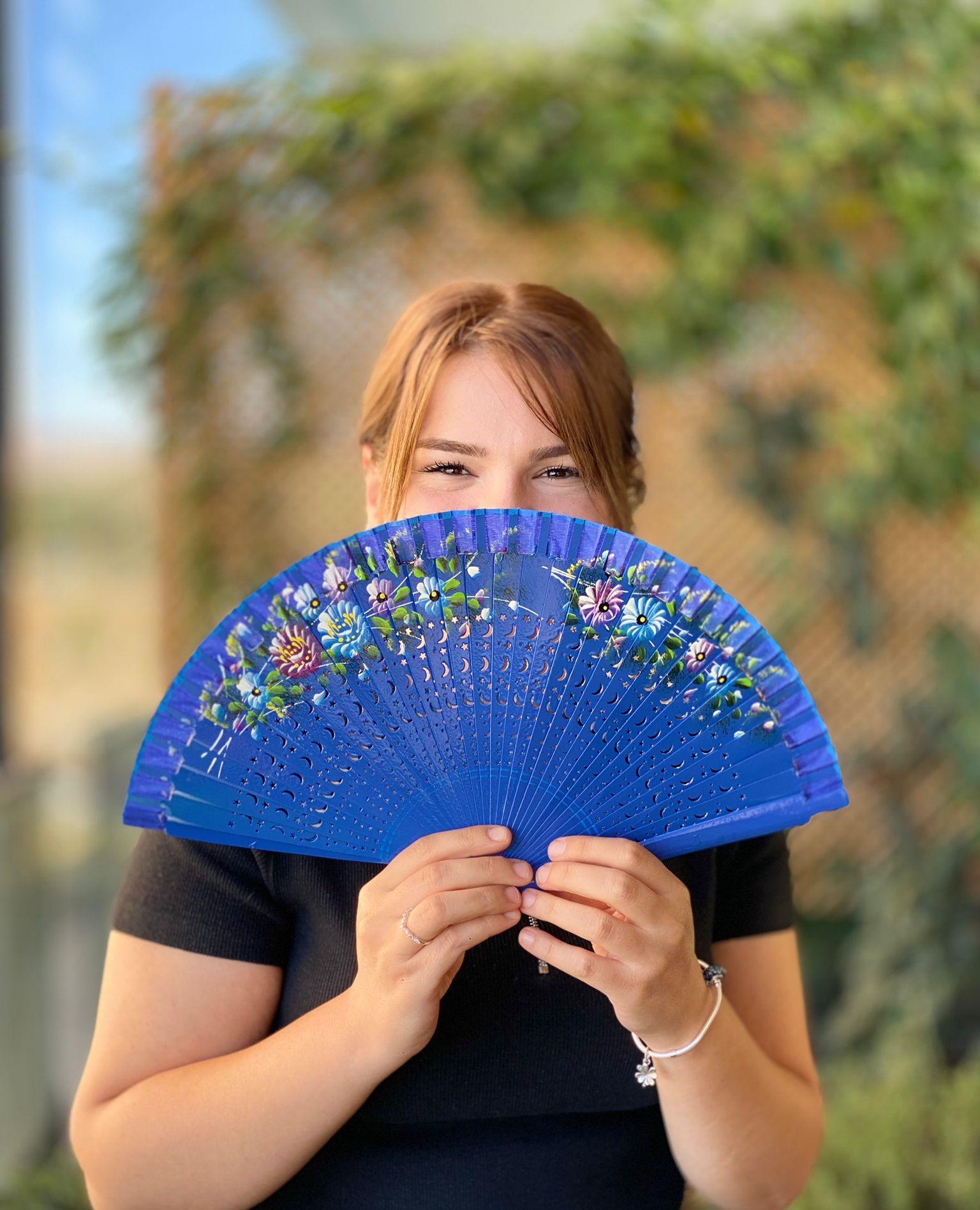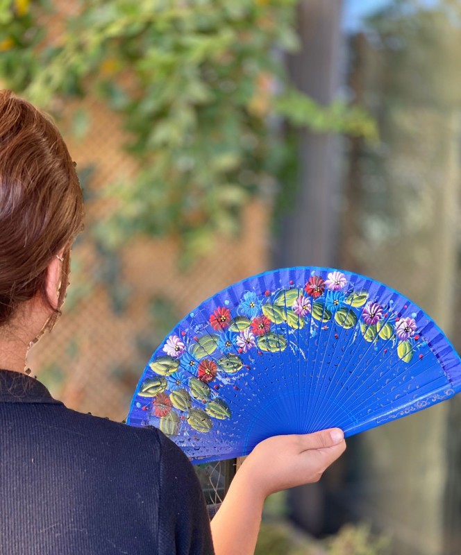 Yoğun Çiçek Desenli Lacivert Yelpaze